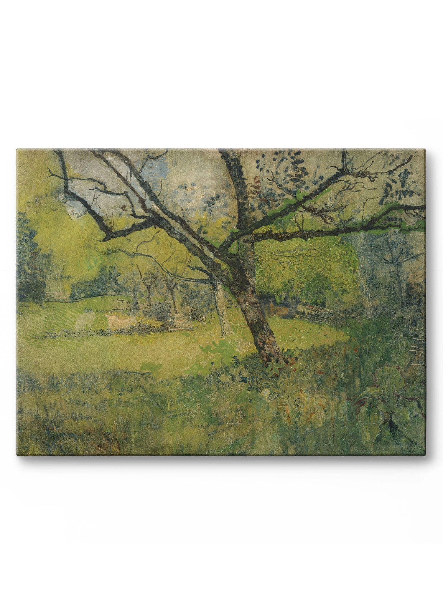 A serene depiction of a blossoming tree in a lush, green field, this artwork celebrates the beauty of nature in a painterly style. The soft textures and rich layers evoke a tranquil, dreamlike quality.